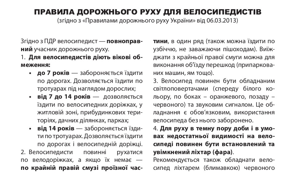 Представники Асоціації просять не тільки самих велосипедистів ознайомитися з цими правилами, але і показати їх своїм друзям, які також їздять на велосипедах. Особливо тим, хто без світлового сигналу їздить увечері, не звертає уваги на світлофори і дорожні знаки.